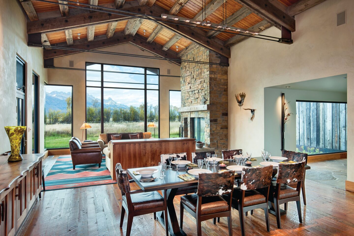 For the outdoor endeavor in rustic chic or modern rustic, Diana suggests an imaginative convergence of varied materials that complements the natural environment. “Low decks in deep rich wood tones that hover over the ground without railings and that lead to large expanses of glass blending interior and exterior spaces work well,” she advised. “Vertical wood siding burned to form a char—Shou Sugi Ban—forms a dark exterior finish that instantly elevates a home’s calm grounded feel.”