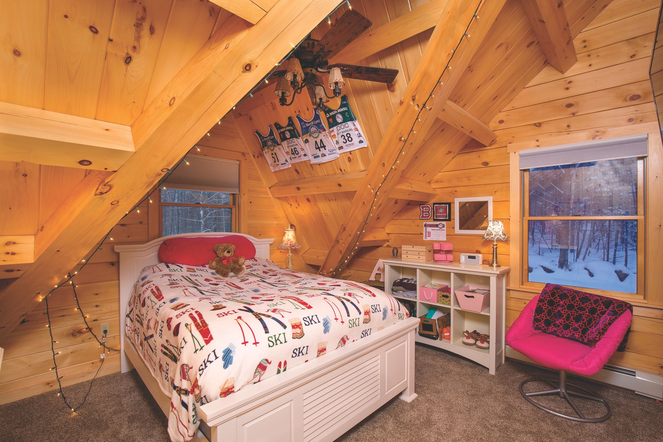 Joseph and his wife Jacquie prepared for their trip by purchasing new snow tires for their vehicle after hearing reports of an upcoming storm. “It was all over the news at the time, calling it a once in a 100-year bomb cyclone,” Joseph recalls. “Coventry Log Homes had asked me to photograph several log and timber homes during the holidays. We had shot two or three homes by the time we turned toward this home in Franconia on January 4th. We got to the Franconia home at noon, had lunch, and a quick tour and set up for interior photography. By 5 p.m. all roads on the mountain were closed, phone lines were down, and we couldn’t reach the historic Franconia Inn, which was a few miles away.”